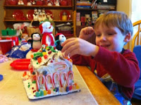 | Little Bro having a blast decorating his gingerbread house. |